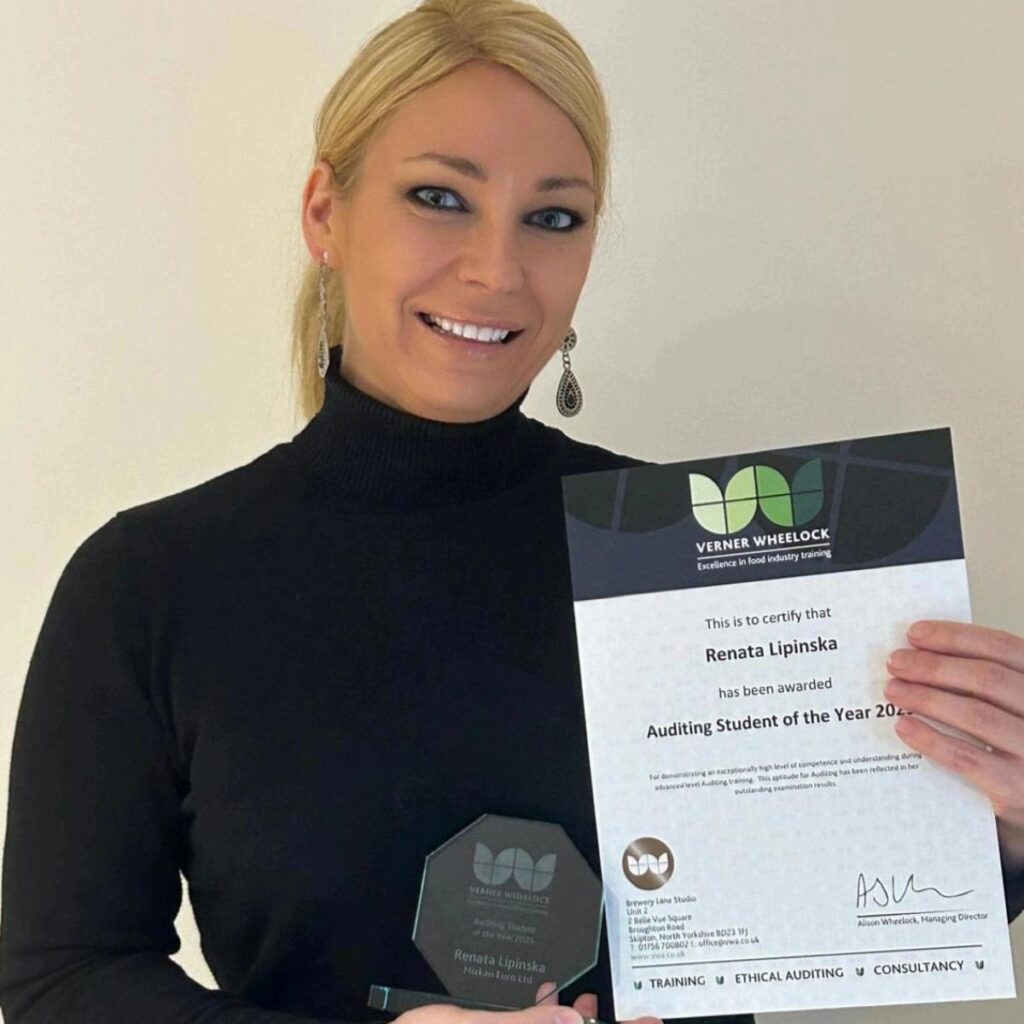 Congratulations to Renata Lipinska from Mizkan Euro Ltd, VWA’s Auditing Student of the Year. Renata’s auditing skills have been exemplary, demonstrating precision, and analytical thinking.